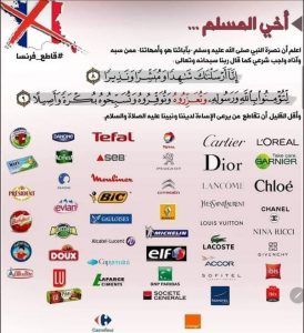 وتضمن بيان المقاطعة الذي نشره الناشطون عشرات الماركات والمواد التي تنتجها الشركات الفرنسية (الغذائية – الألبسة – وحتى زيوت السيارات)، مع دعوات لكافة الشعوب المسلمة للامتناع عن شراء تلك المنتجات، رداً على ما قامت الحكومة الفرنسية به.