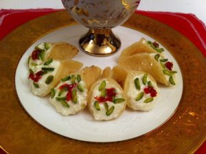 ترص في طبق التقديم وتزين بالفستق وجوزة الهند وبالهناء والشفاء.