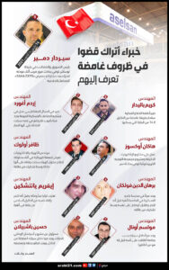 في الإنفوغراف أدناه استعراض لعدد من الخبراء الأتراك التابعين لمشاريع حساسة في شركة “أسيلسان” والذين فقدوا أرواحهم منذ عام 2006: