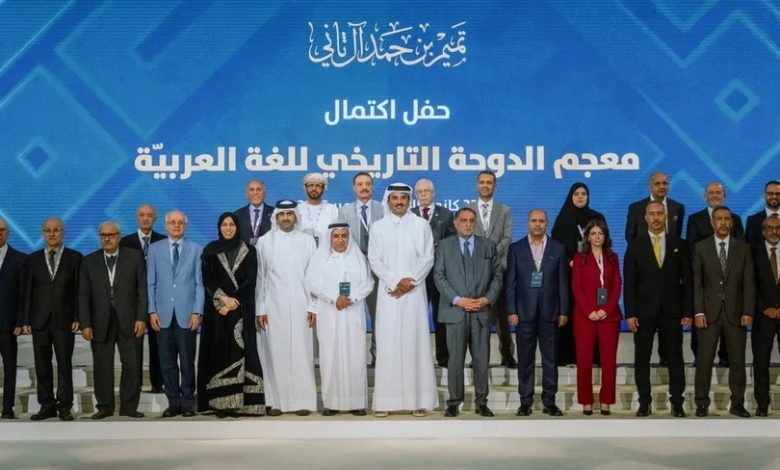 احتفى معجم الدوحة التاريخي للغة العربية، بالتعاون مع المركز العربي للأبحاث ودراسة السياسات، صباح الاثنين، باكتمال النسخة النهائية من المعجم، في حفل رسمي أقيم بفندق فيرمونت رافلز – قاعة كتارا في مدينة لوسيل القطرية، برعاية أمير دولة قطر الشيخ تميم بن حمد آل ثاني، في محطة وصفت بأنها مفصلية في تاريخ الدرس اللغوي العربي.